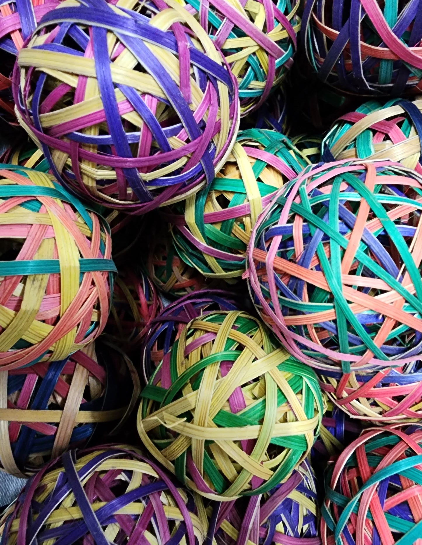 Bamboo Balls - use creatively to stimulate and challenge your pet. Just use as a crunchy ball to chew or push around as a foot toy. Push treats inside to encourage foraging. Hang them in hard to get at places. Make your own colourful toys.