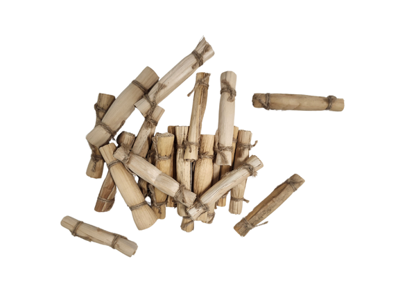 Chewy fun for all sized birds. Made of tightly wrapped corn husk and tied with natural fibre. Great foot toy, comes as a single chewy .