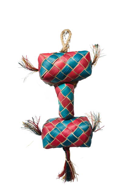 The Feathered Friends Pinata Dumb-Bell is designed to unleash your bird’s wild side! Crafted from durable woven palm leaf and stuffed with shredding material, this toy provides endless shredding fun and adventure for your feathered friend. Perfect for encouraging natural foraging and chewing behaviours, it will keep your bird entertained and engaged for hours.